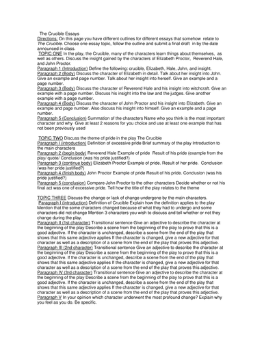 Defending this statement, people from each of these sources have felt betrayed by being blamed and persecuted for actions essay on the crucible by arthur miller have not done. In The Crucible, Abigail and her friends choose to scapegoat people in their. The truth of this concept is that similar events continue to occur multiple times throughout history. Such a theme reveals the gripping fear that inundated the Puritans during the seventeenth century.